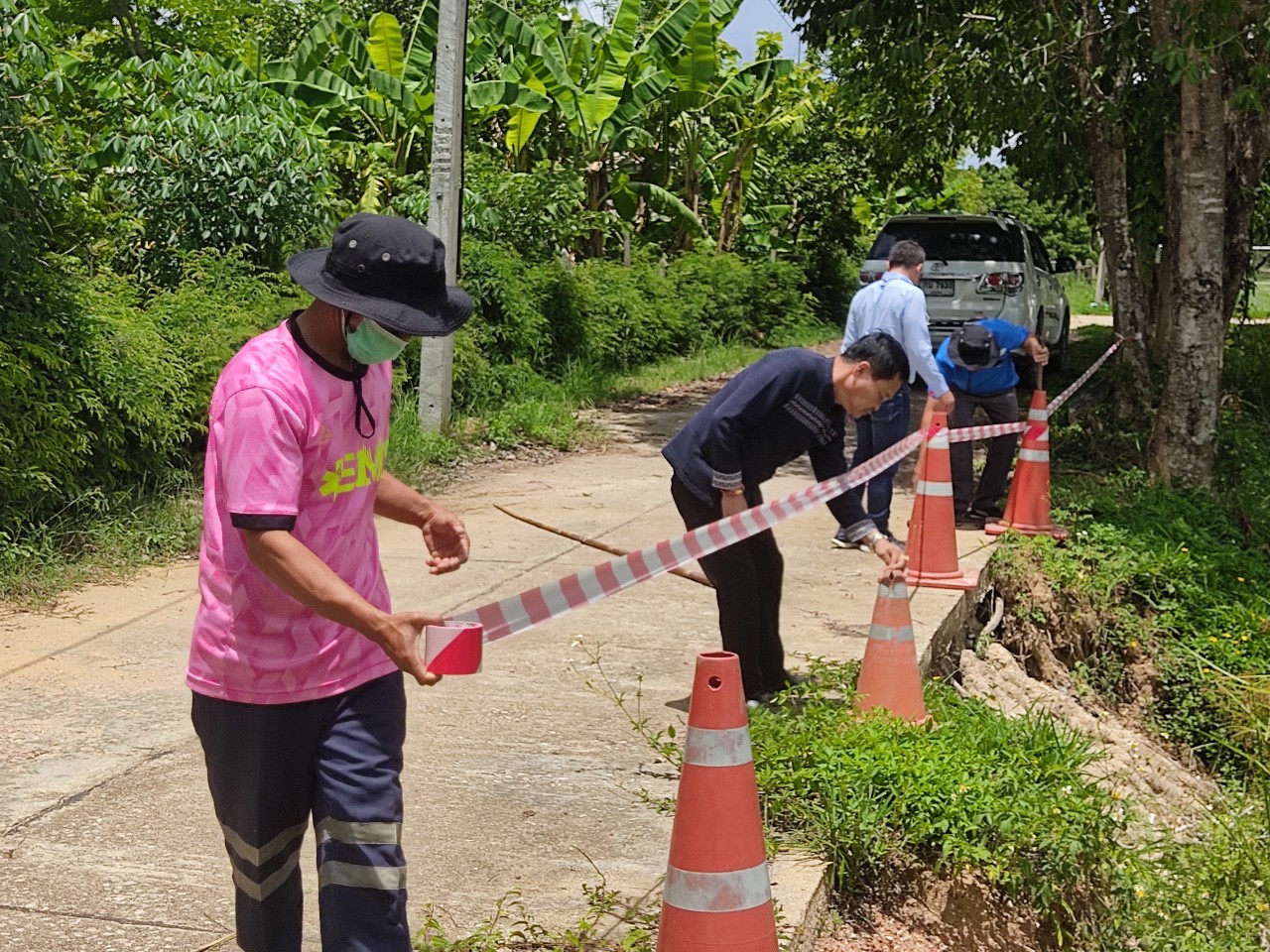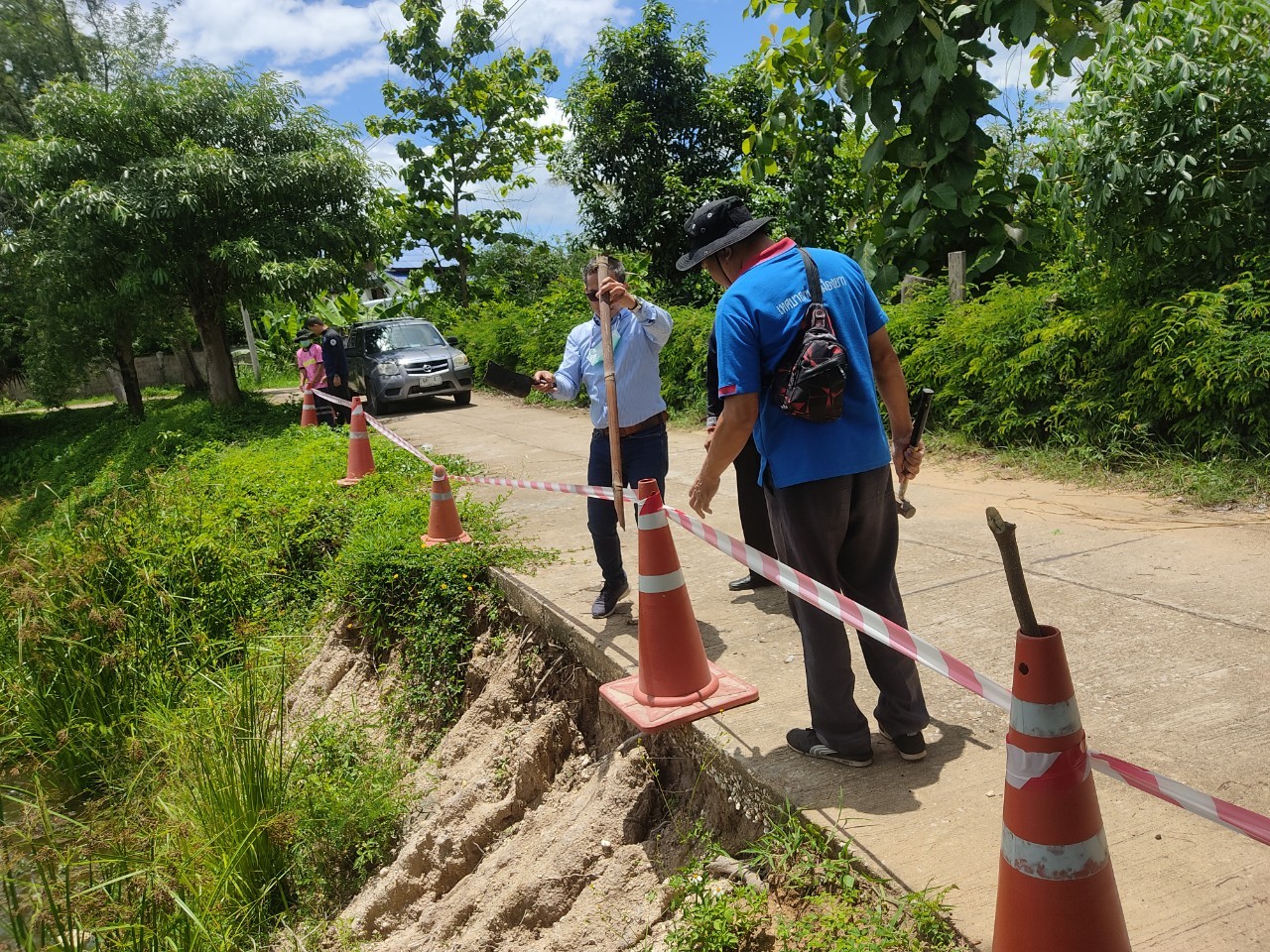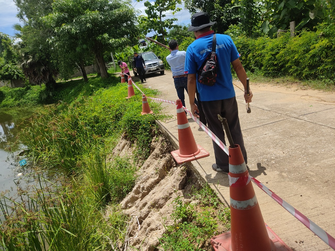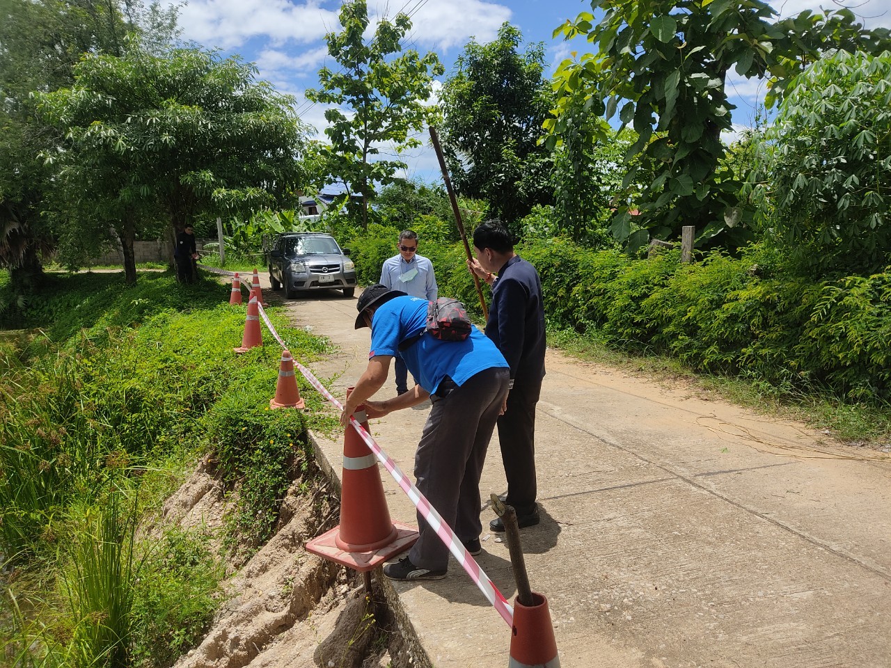 นายพงษ์ศักดิ์ แก้วปินตา นายกเทศมนตรีตำบลเมืองยาว ได้มอบหมายให้ นายกิตติภณ ใจคำต๋า รองนายกเทศมนตรี ร่วมกับงานป้องกันและบรรเทาสาธารณภัย ตรวจสอบเหตุไหล่ทางเกิดการทรุดตัว บริเวณสระน้ำบ้านหมู่ 14 บ้านสันกำแพงใต้ ทำให้ทราบว่าไหล่ทางบริเวณคันสระน้ำดังกล่าวทรุดตัว เป็นหลุมขนาดใหญ่ ตลอดแนวถนนยาว ประมาณ 12 เมตร นายกิตติภณ ใจคำต๋า รองนายกเทศมนตรี จึงได้สั่งการให้งานป้องกันฯ ทำแนวกั้นเพื่อป้องกันอุบัติเหตุที่จะเกิดขึ้น ทั้งนี้ การทรุดตัวของไหล่ทางดังกล่าว อยู่ระหว่างดำเนินการเร่งซ่อมแซม ให้กลับมาใช้งานดังเดิม