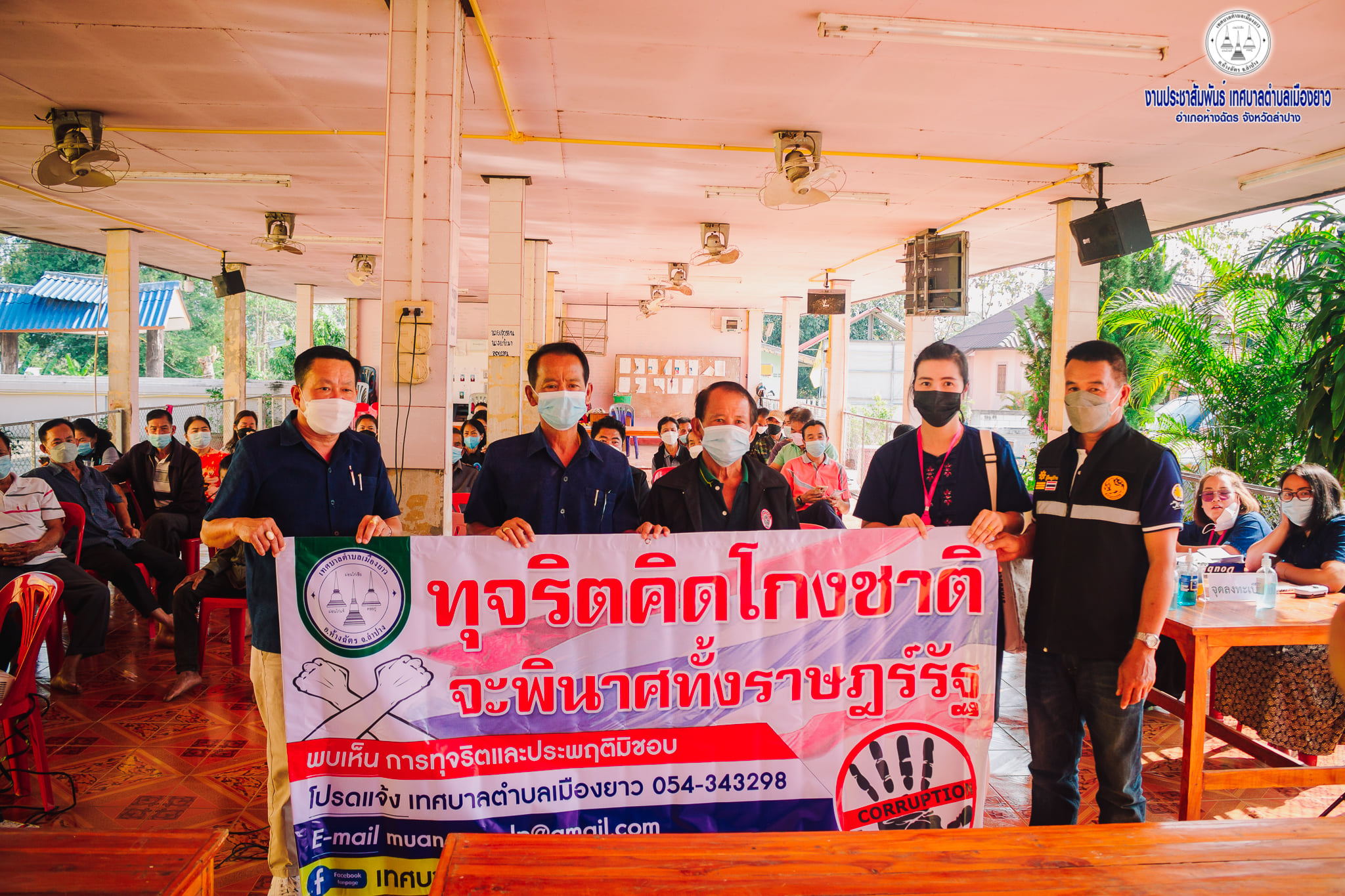 เทศบาลตำบลเมืองยาว จัดกิจกรรมติดป้ายประชาสัมพันธ์ กรณีพบเห็นการทุจริต ประจำปีงบประมาณ 2565 ทั้ง 15 หมู่บ้านในเขตเทศบาลตำบลเมืองยาว พร้อมกับการจัดโครงการเทศบาลพบประชาชน เพื่อพบปะพูดคุยประชาชนเพื่อนำข้อมูลมาจัดทำแผนพัฒนาตำบลเมืองยาว ระหว่างวันที่ 4 กุมภาพันธ์ ถึง วันที่ 14 มีนาคม 2565 โดยมีผู้เข้าร่วมกิจกรรม เป็น ผู้บริหาร ข้าราชการ พนักงาน เจ้าหน้าที่ของเทศบาลตำบลเมืองยาว และประชาชนแต่ละหมู่บ้านในเขตเทศบาลตำบลเมืองยาว